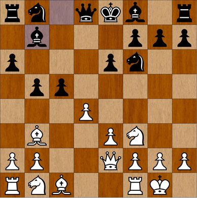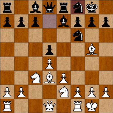 Hvid vil gerne spille Se4 og videre til g3 for at presse på kongefløjen. Med den bondestruktur bør sort ikke spille Db4+, for efter Dd2, Dxd2; Kxd2 står hvid mest aktiv, bl.a. fordi Lc8 stadig er lukket inde bag egne bønder. I stedet bør sort spille på e6-e5.